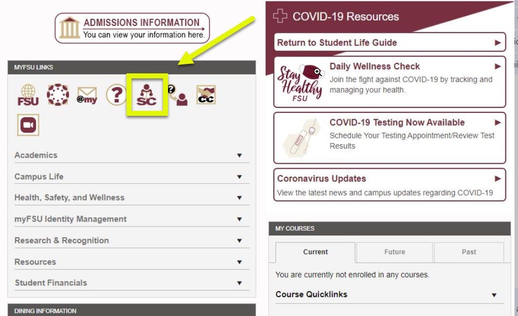 To access the appeal forms, you will need to log into your MyFSU portal. Once logged in, you will need to choose the SC (Student Central) option which is located on the MyFSU portal, top left section under ‘MyFSU Links’.